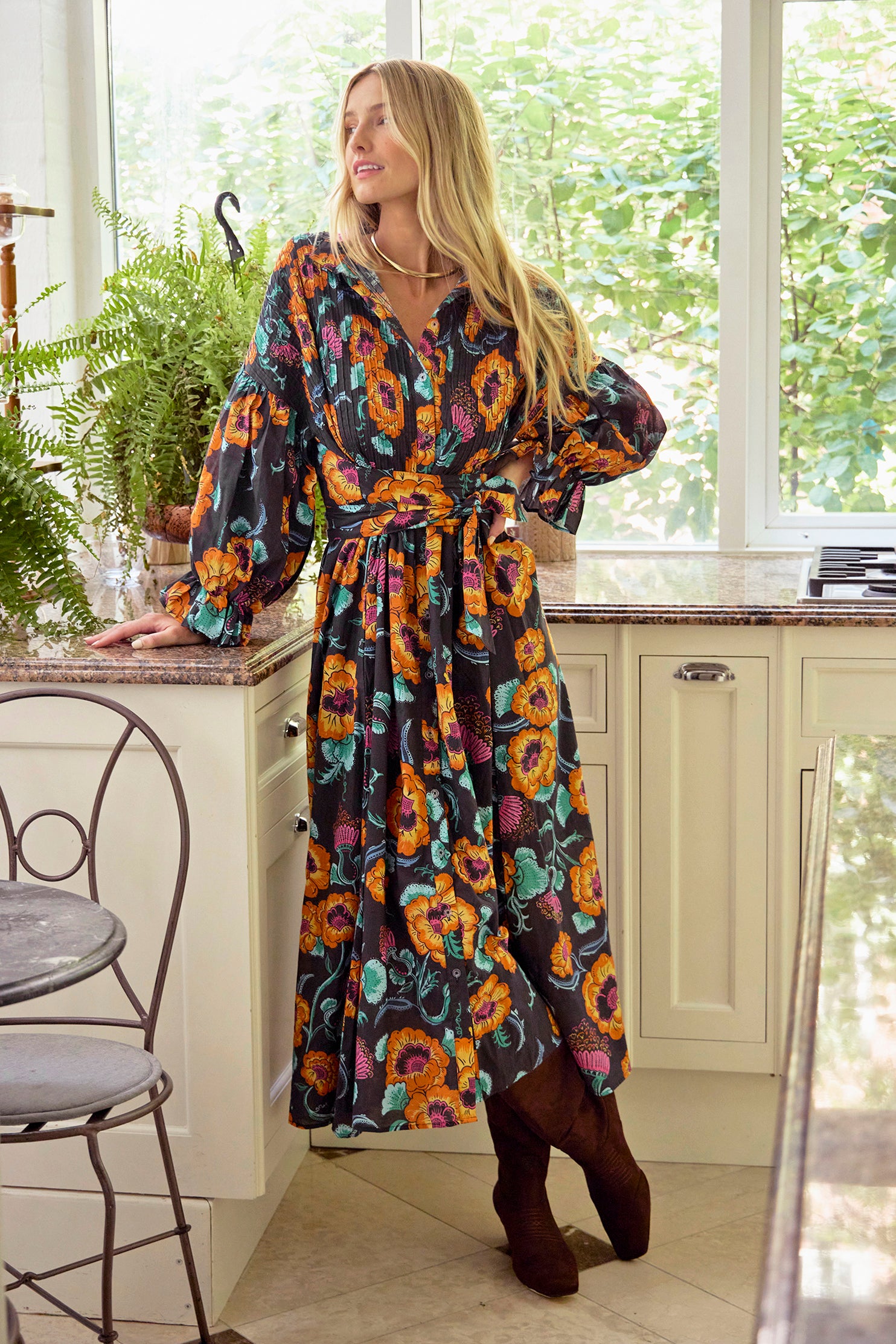 Every body is beautiful. Introducing The Every Body Dress, the perfect addition to your wardrobe. Designed as an innovative one size fits most style, making it perfect for a broad variety of body types, this dress offers effortless appeal and comfort. Made from light and airy cotton voile, it features a full gathered sleeve, button front, an attached, adjustable belt and a flowy skirt for a chic and sophisticated look. Elevate your style with this elegant and comfortable wardrobe addition.